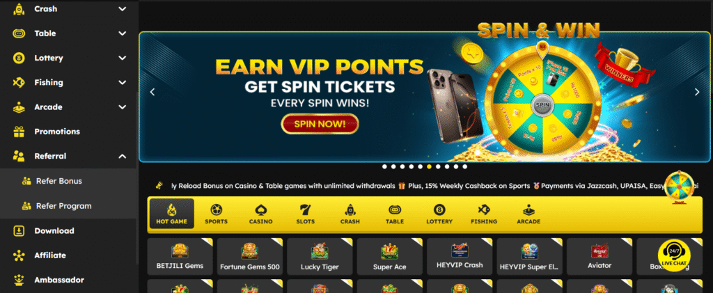 This digital platform is offering various amazing games to players. You can enjoy table games, for instance, Baccarat, Roulette, Andar Bahar, Fan Tan, etc. Also, you can play the hot games, including Betjili Gems, Fortune Gems 500, Super Ace, Aviator, and more. Also, it has the best customer service, which always helps the players. It also offers various methods to contact them, for example, emails and live chats.